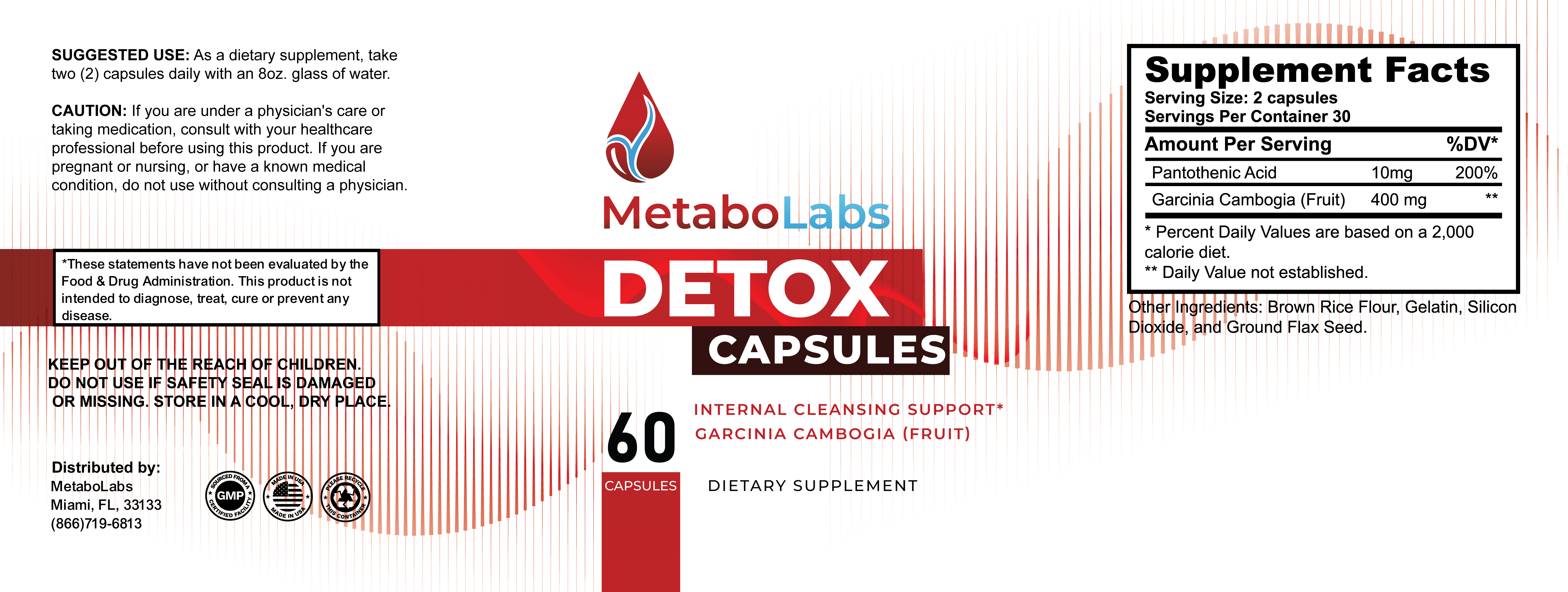 Detox Capsules 60 Count are a dietary supplement featuring Garcinia Cambogia fruit and other natural ingredients designed to support internal cleansing and digestive wellness. These capsules are intended to complement a healthy lifestyle, including balanced meals and regular activity, helping you feel lighter and refreshed.